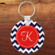 Navy blue and white zig zag stripes with a pop of blod red for a classic, nautical look. Personalize with any initial.