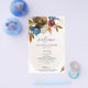 This beautiful floral design features rust and navy watercolor flowers. Add your information using the template form. The Customize Further feature can be used to access the advanced editing menu where you can change the font, colours and layout of the text.