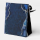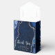 This elegant and glamourous birthday party thank you favour bag features a navy blue agate marble background with faux silver glitter accents. The text combines handwritten script and modern sans serif fonts for a classy and sophisticated look. This will be perfect for an autumn fall and winter birthday party.