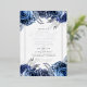 Cool watercolor floral wedding invitation in accents of navy blue and silver customizable to your event specifics.