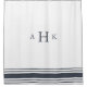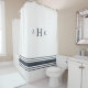 Our simple and elegant shower curtain adds a dose of chic, classic style to your bathroom, in crisp white with a five stripe bottom border in smoky grey-blue Hale Navy. Personalize with a three initial monogram in the centre, making this shower curtain a beautiful and unique gift for newlyweds or new homeowners.