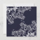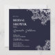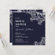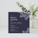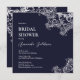 A Navy and White Elegant Bridal Shower Invitation to honour the Bride. This Invitation is designed on a navy background with white text and decorative accents. The text includes: The Bride's Name, Event Date, Time, Hostess Name, and RSVP details. The reverse is a matching navy background with white decorate accents.