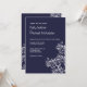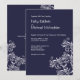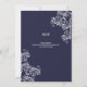 A Navy and White Elegant Style Wedding Invitation designed with white decorative accent on a navy background, front and reverse. The invitation cover side text includes: The Bride and Groom's Names, Wedding Date, Time, Location and Reception Note. The reverse side text includes: RSVP and your RSVP Details. To personalize, simply insert your text into our easy template, replacing the sample. Be sure to view the entire Navy and White Elegant Style Wedding Collection for matching cards and accessories.