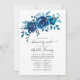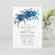 Navy indigo and white floral long distance baby shower by mail invitation with elegant handwriting typography.