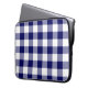 Dark blue, white, and light blue squares form a bold, buffalo plaid. The navy and white gingham pattern reminds me of classic decor.