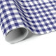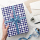 Dark blue, white, and light blue squares form a bold, buffalo plaid. The navy and white gingham pattern reminds me of classic decor.