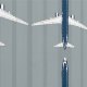 This wallpaper features a modern and sophisticated design with navy blue and white jet airplanes aligned in a precise pattern, set against a subtle striped grey background. The soft stripes add texture and depth to the cool grey backdrop, enhancing the sleek and detailed airplanes that dominate the design. Ideal for spaces seeking a blend of contemporary style and aviation-inspired decor, this wallpaper is perfect for offices, living rooms, or any area where a touch of modern elegance and adventure is desired. The contrast between the navy and white jets and the striped grey background offers a refined yet dynamic visual appeal.