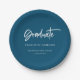 Navy and White Modern Script Graduation Party Paper Plate