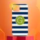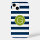 Navy and White Striped Pattern Green Monogram Case-Mate iPhone Case