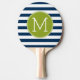Navy and White Striped Pattern Green Monogram Ping Pong Paddle