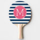 Navy and White Striped Pattern Hot Pink Monogram Ping Pong Paddle