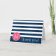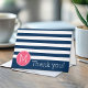 Navy and White Striped Pattern Hot Pink Monogram Thank You Card