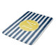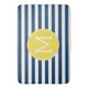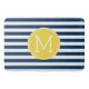 Navy and White Striped Pattern Yellow Monogram Bath Mat