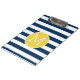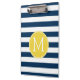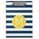 Navy and White Striped Pattern Yellow Monogram Clipboard