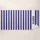 A striking striped beach towel with navy and white stripe pattern. Personalize with your name.