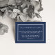 Slip these chic, petite cards into your wedding invitations to let out of town guests know of any hotel arrangements or group codes, along with hotel contact information. Rich nautical navy blue cards feature elegant white block lettering. Coordinates with our Navy Tides wedding invitation suite.