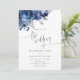 Navy and white flowers handwriting typography wedding invitations with accents of silver foil.