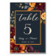 Elevate your wedding with these navy & fall watercolor flower table numbers. With their deep navy backdrop and vibrant autumnal blooms, this table decor exudes elegance and charm. Plus, it's fully customizable, allowing you to add a personal touch to your special day. Be sure to check out all of the matching wedding items in this collection!