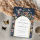 Navy Blue Arch Wedding Invitation Foil Invitation. This stylish & elegant boho arch wedding foil invitation features gorgeous hand-painted watercolor wildflowers arranged as a lovely frame. The back includes a beautiful coordinating bouquet with a monogram for the bride and groom. Find matching items in the Navy Blue Boho Wildflower Wedding Collection.