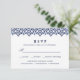 Designed to coordinate with our Azulejos wedding collection, this elegant mediterranean RSVP card features a sophisticated navy blue watercolor spanish tile top border with your desired response date and meal choice or entree selections.