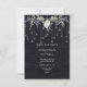 This is a beautiful rustic wedding Save the Date card with a Navy Blue barnboard, silver sparkly string lights and a watercolor assortment of Wisteria flowers
