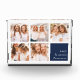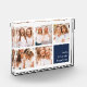 Celebrate your bond with your best friend with this modern photo collage block featuring 5 favourite square photos arranged in a grid layout. The lower right square bears the words “best friends forever,” or your choice of text, in white vintage typewriter lettering on a navy blue background.