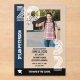 Cool acrylic graduation party invitation with the year in a multiline font personalized with a photo of the graduate. Boy graduate acrylic invitation for a grad party with details in black and navy and a photo of the graduate with the year in focus by printing them in large numbers on the side of the grad party invite.