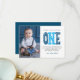 Modern, simple and elegant boy first birthday thank you card. Design featuring brushed script one , thank you message and a photo.