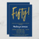 Navy Blue 50th Birthday Party Invitation Gold