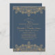 Navy Blue 50th Wedding Anniversary Golden Lace Invitation