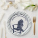 These paper plates are ready to be personalized with your own custom message. They feature a border of diagonal stripes in navy blue, charcoal grey and light aqua blue against an eggshell white background and an illustration of a wooden Adirondack chair in navy blue making them perfect for outdoor gatherings or parties with a more laid back feel.