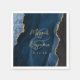These elegant modern wedding napkins feature a navy blue watercolor agate geode background trimmed with faux gold glitter. Personalize them with the names of the couple in gold-coloured handwriting calligraphy over a large blue ampersand, and the wedding date in copperplate font.