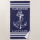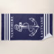 Navy Blue Anchor and Stripes Custom Name or Text Beach Towel