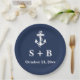 Navy Blue Anchor Nautical Beach Ocean Wedding Paper Plate