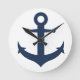 Navy Blue Anchor Nautical Round Clock