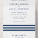 Invite guests to your wedding with this customizable all-in-one wedding invitation. It features a navy blue anchor illustration, classic typography and a stripes pattern. The texts are fully editable. Personalize by adding your event details. This navy blue wedding invitation is perfect for nautical weddings and summer weddings.