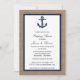 Navy Blue Anchor On Burlap Nautical Wedding Shower Invitation