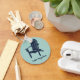 Create your own souvenir or small personalized gift. This keychain features an illustration of a wooden Adirondack chair in navy blue against a light aqua blue coloured background. Your text appears in matching navy blue script lettering below the graphic.