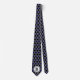 A stylish and customizable neck tie, featuring a navy blue and black quatrefoil pattern and monogram circle at the bottom where you can type in your initial or any other text. Suitable for any formal occasion. Makes a unique gift for stylish dudes!