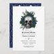 Whimsical vintage floral skull gothic wedding rehearsal dinner invitation in accents of navy and black customizable to your event specifics.