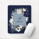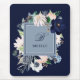 Navy Blue and Blush Floral | Name and Monogram Mouse Pad