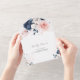 The combination of navy blue and blush pink flowers is a gorgeous and elegant invitation.