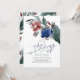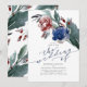 Navy Blue and Burgundy Red Floral Modern Wedding Invitation