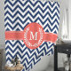 Navy Blue and Coral Chevron Laurel Monogram