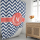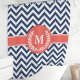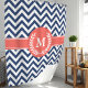 Enhance your bathroom with this navy blue and coral chevron shower curtain, featuring a stylish laurel monogram. The bold chevron pattern and elegant laurel design create a sophisticated and personalized touch. Made from high-quality fabric, this curtain ensures durability and easy maintenance, perfect for a modern and stylish bathroom decor.
