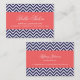 Navy Blue and Coral Modern Chevron Stripes Business Card