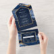 Navy Blue and Gold Agate Marble Wedding All In One Invitation