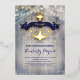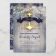 Coastal or seaside baby shower invitations 'It's a Boy!' feature a gold foil anchor, navy blue monogram, a string of lights, and rustic distressed driftwood background.