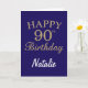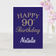 Navy Blue and Gold Glitter 90th Birthday Card