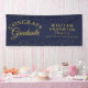 An elegant graduation banner featuring your grad's details set in chic typography on a navy blue and gold glitter background. Designed by Thisisnotme©